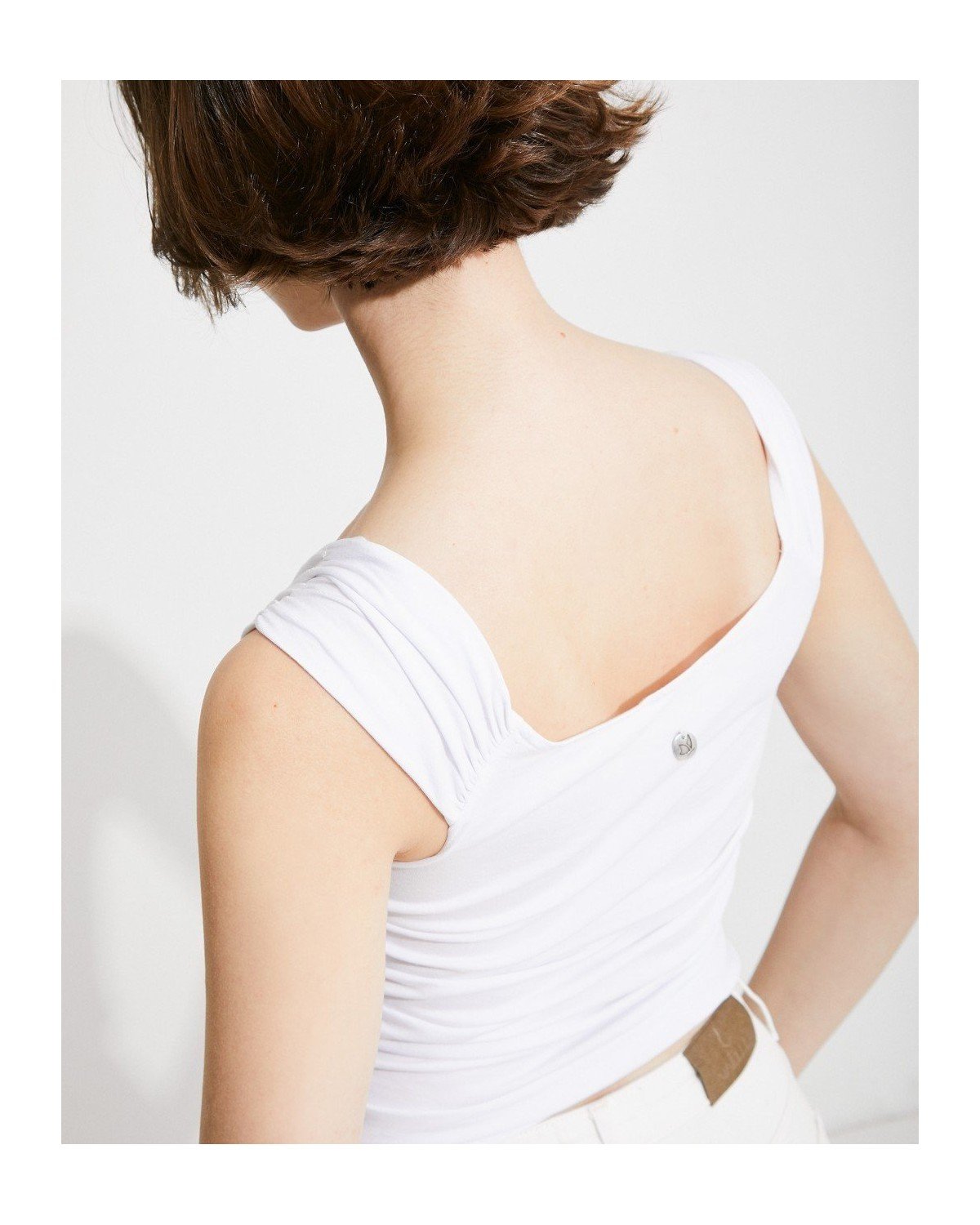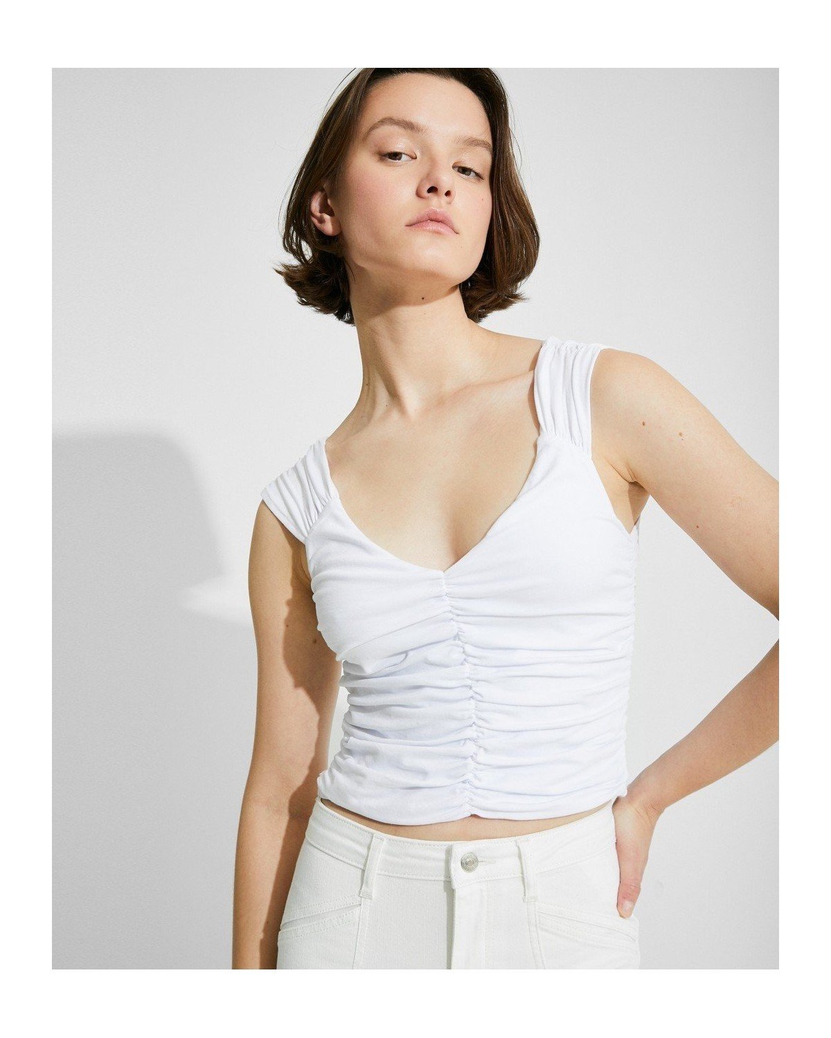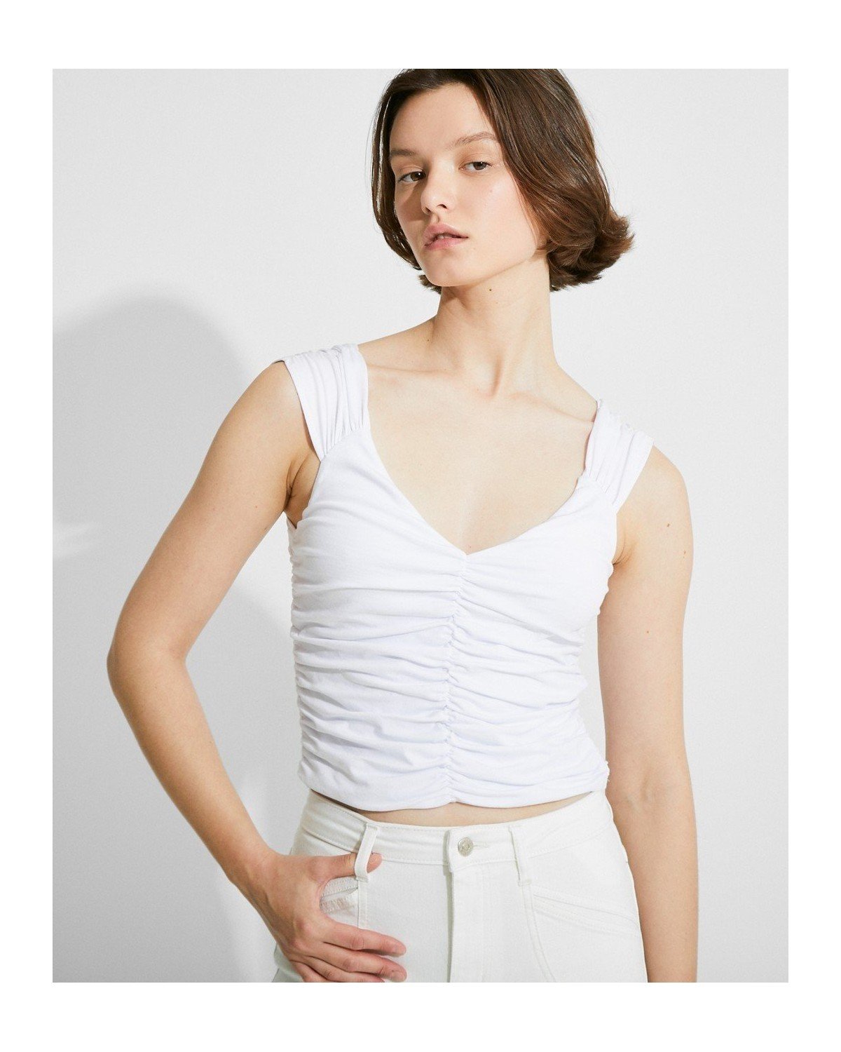 Top corto drapeado de tirantes