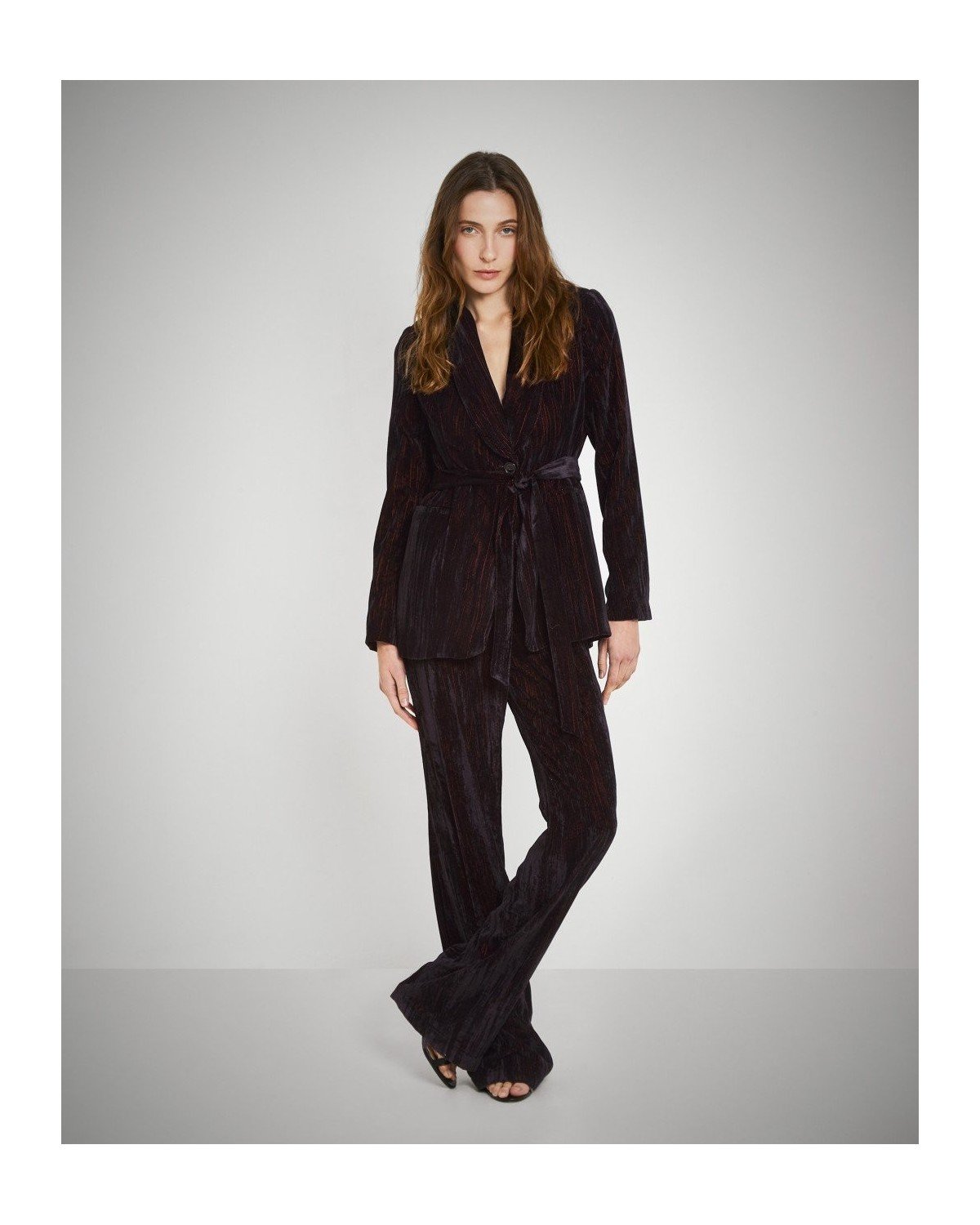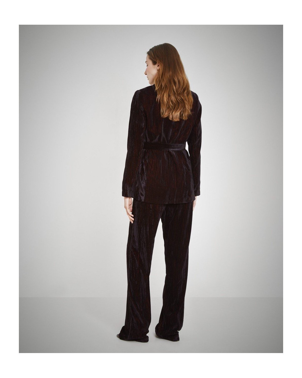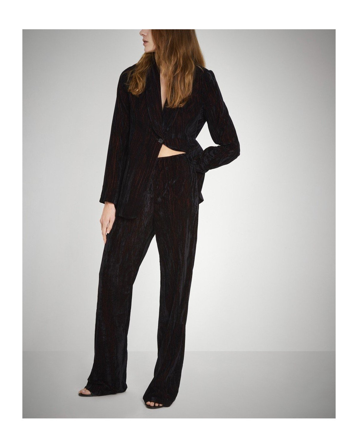 Pantalón aterciopelado con brillo de bajo ancho y cierre lateral invisible