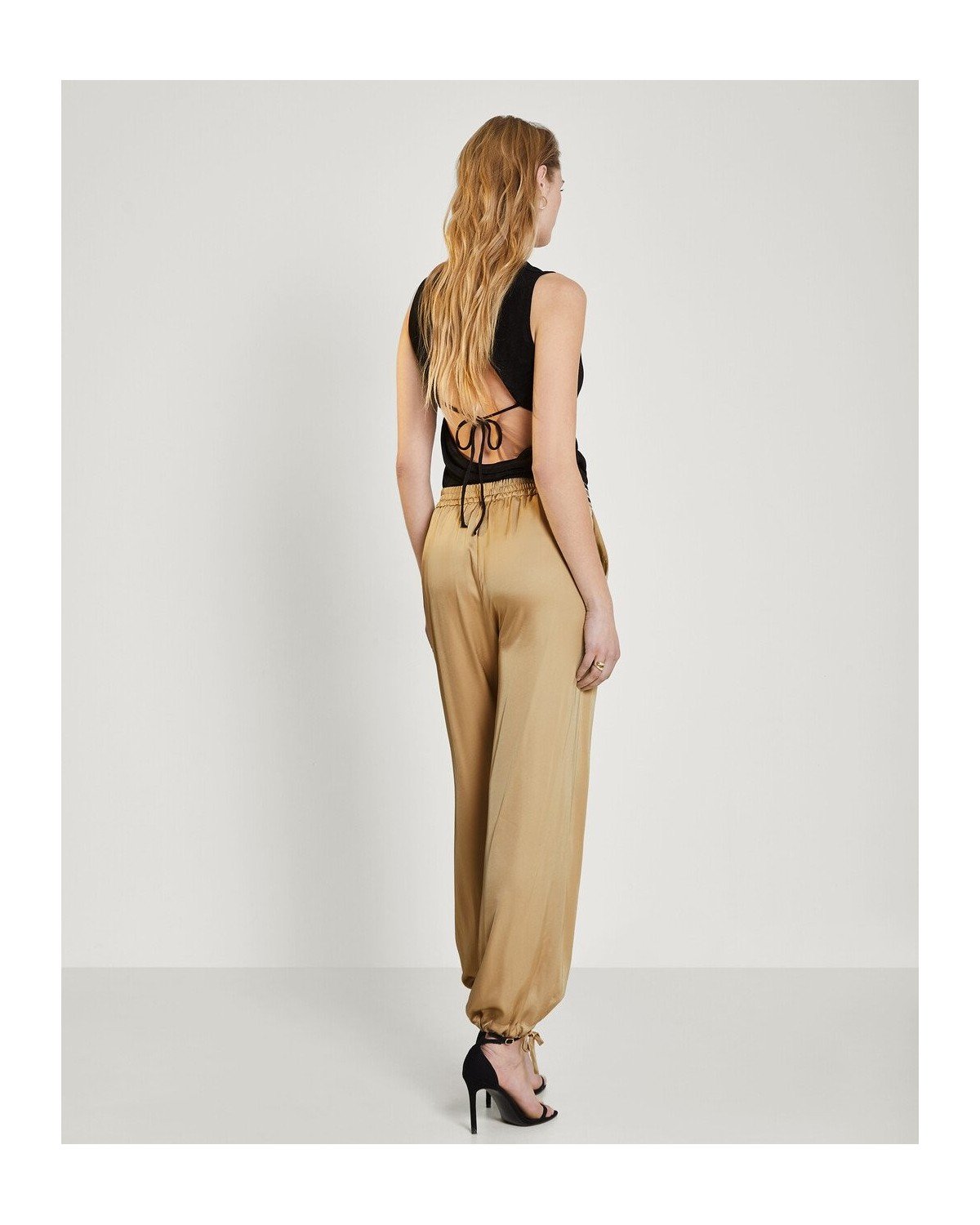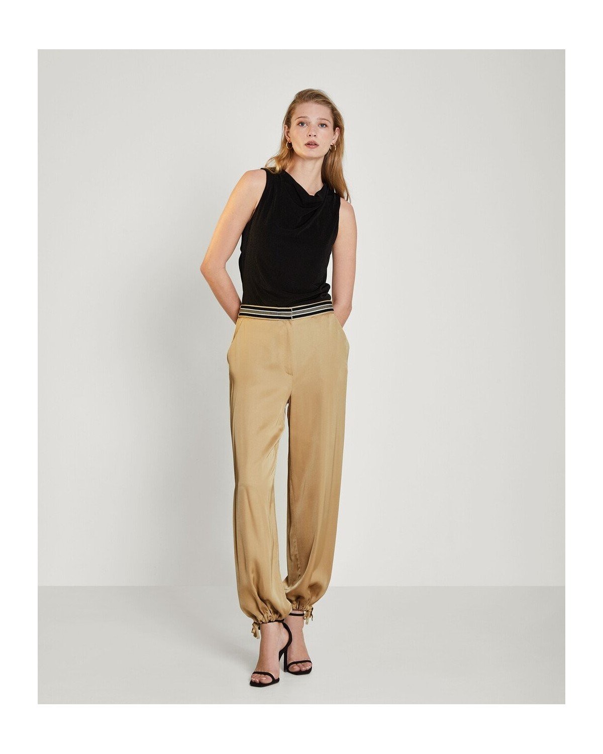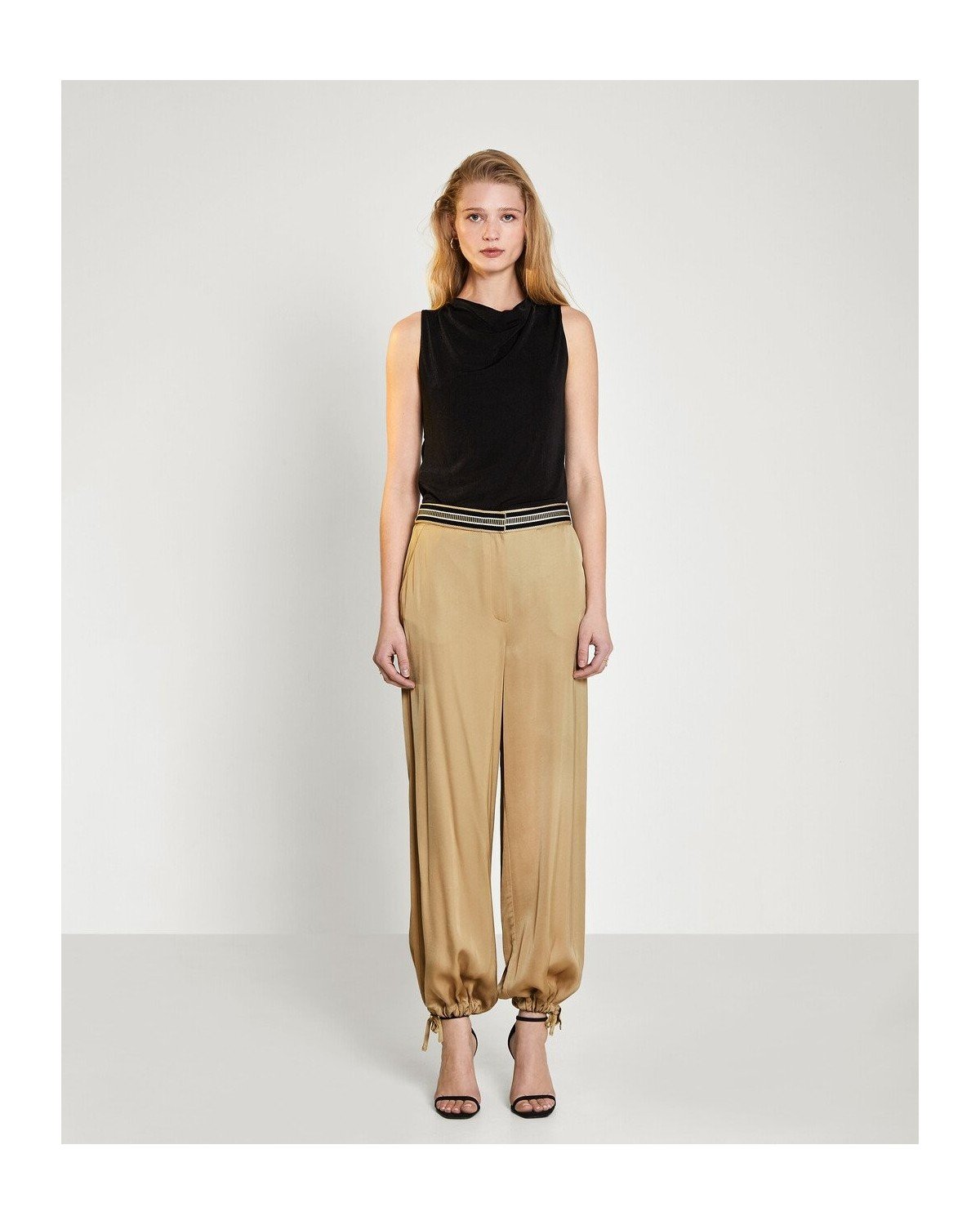 Pantalón satinado ancho con bajo ajustable y cierre con gancho y cremallera oculta