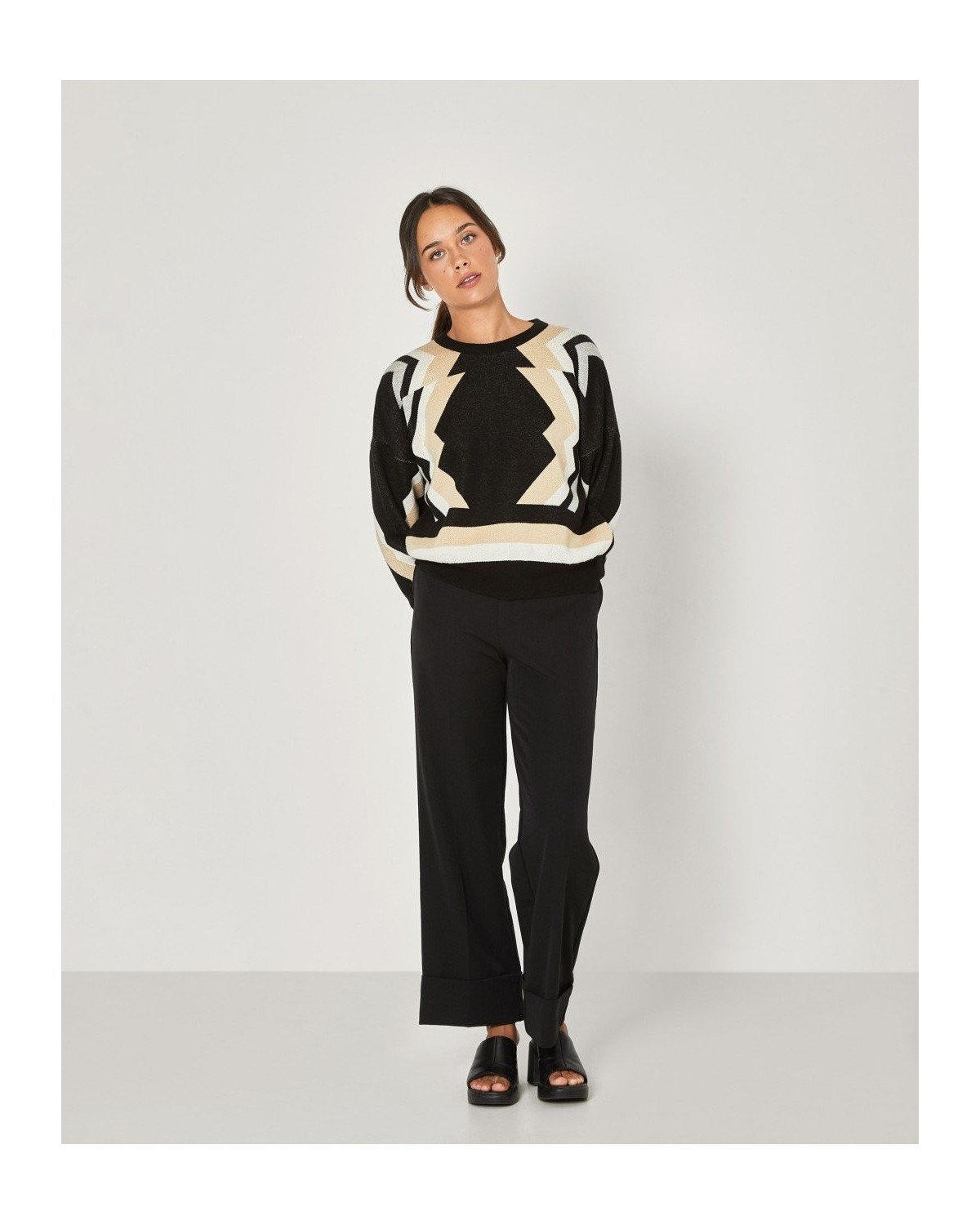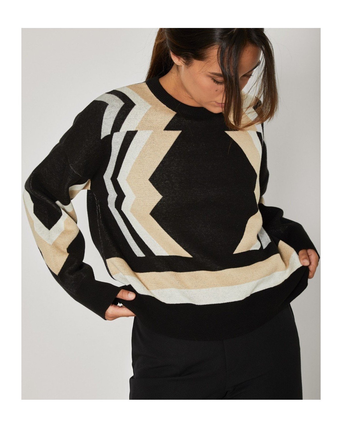 Jersey holgado estampado de cuello redondo