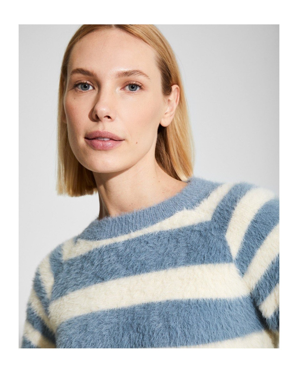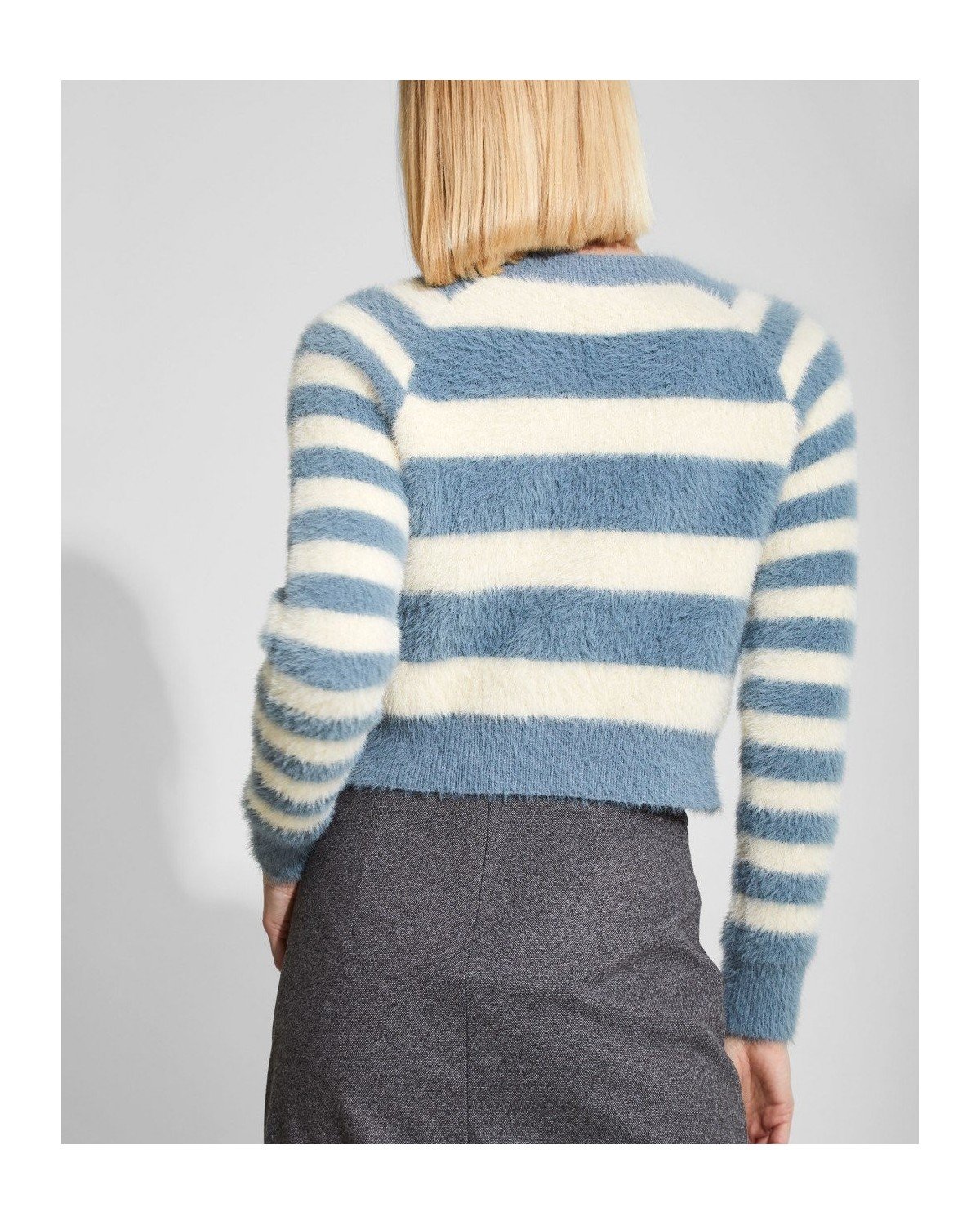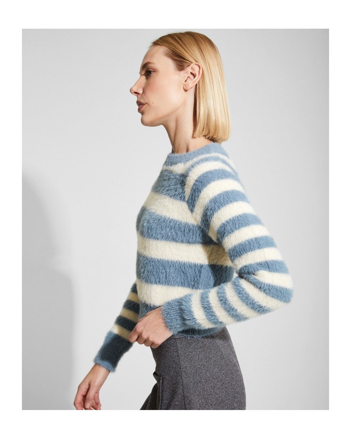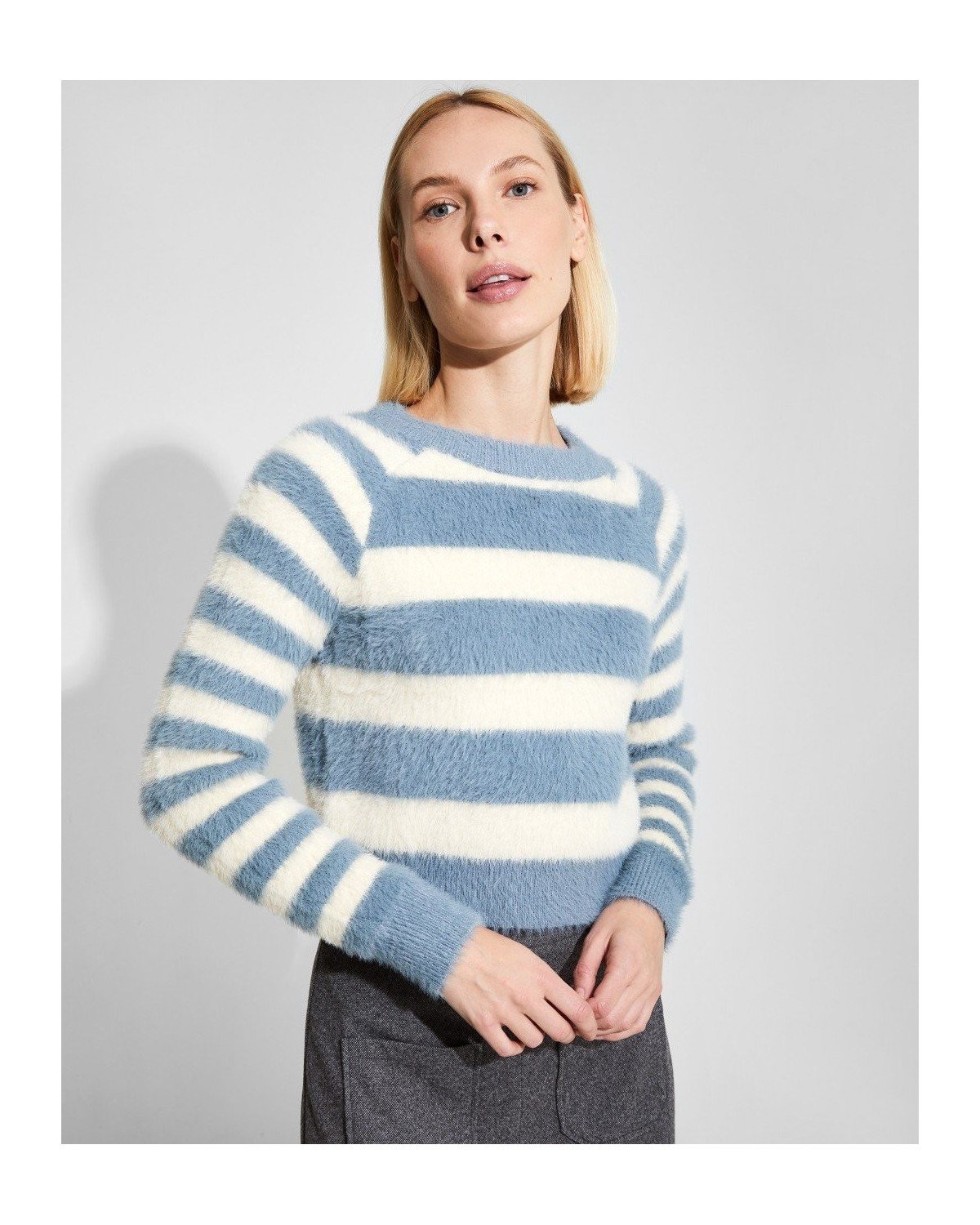 Jersey efecto pelo de rayas con cuello redondo cerrado