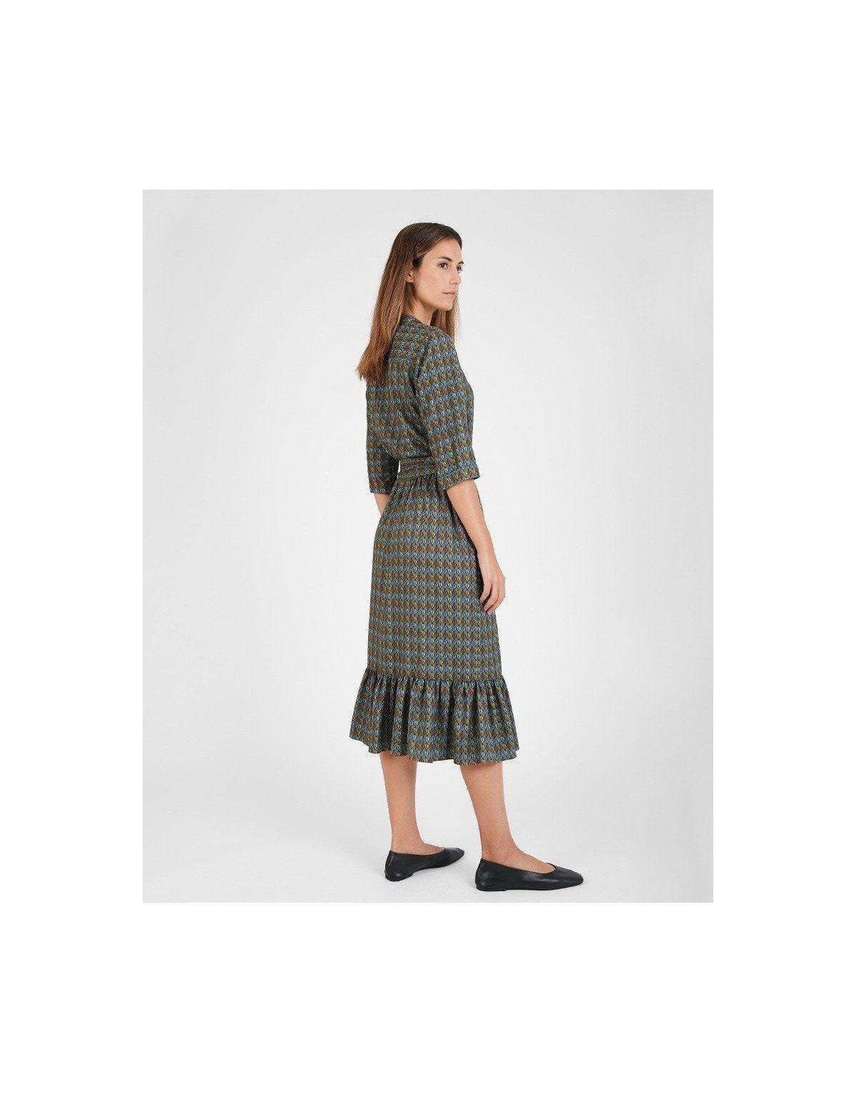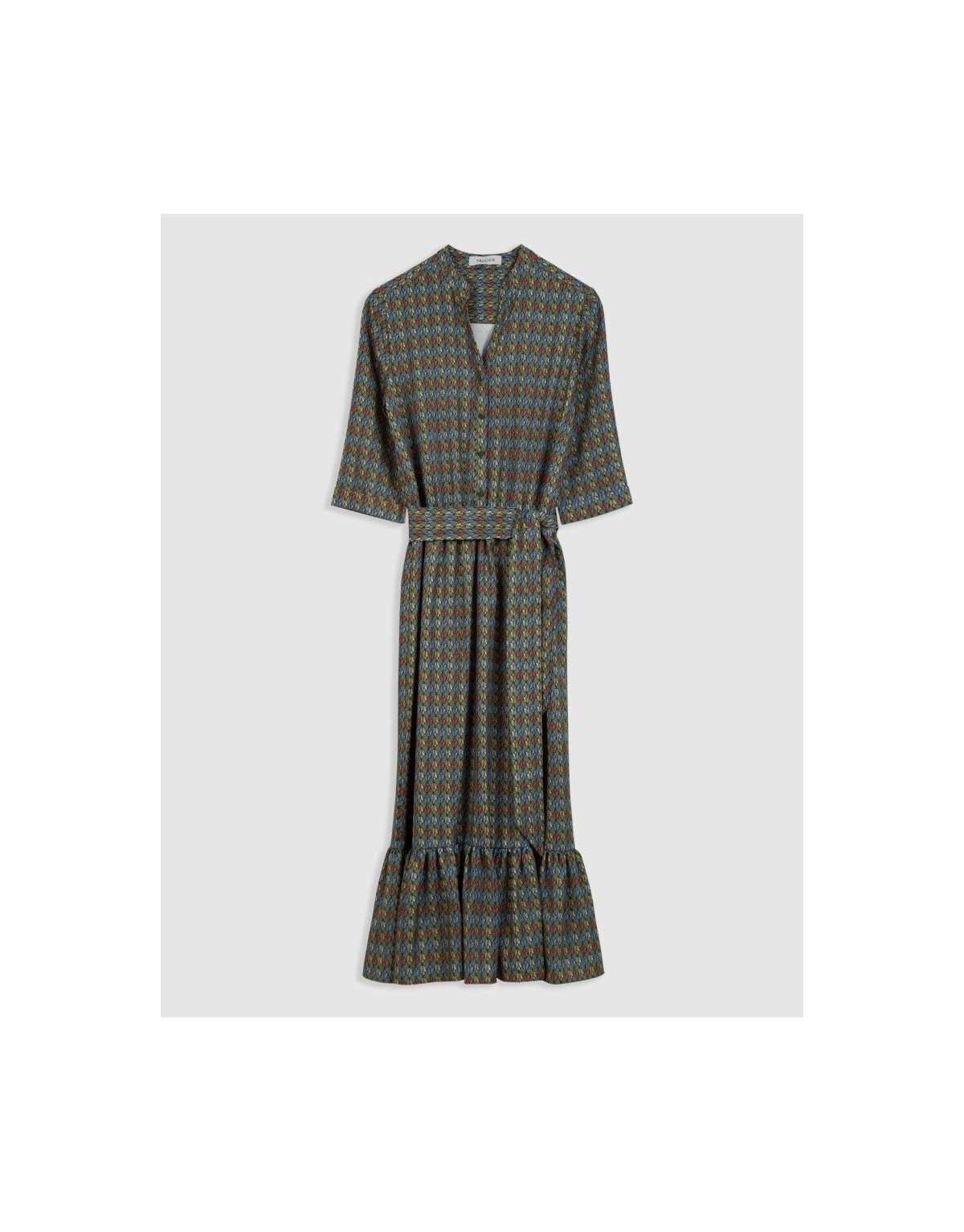 Vestido camisero largo con volante en bajos y cintura ajustable