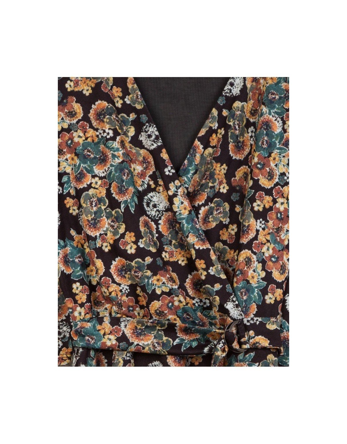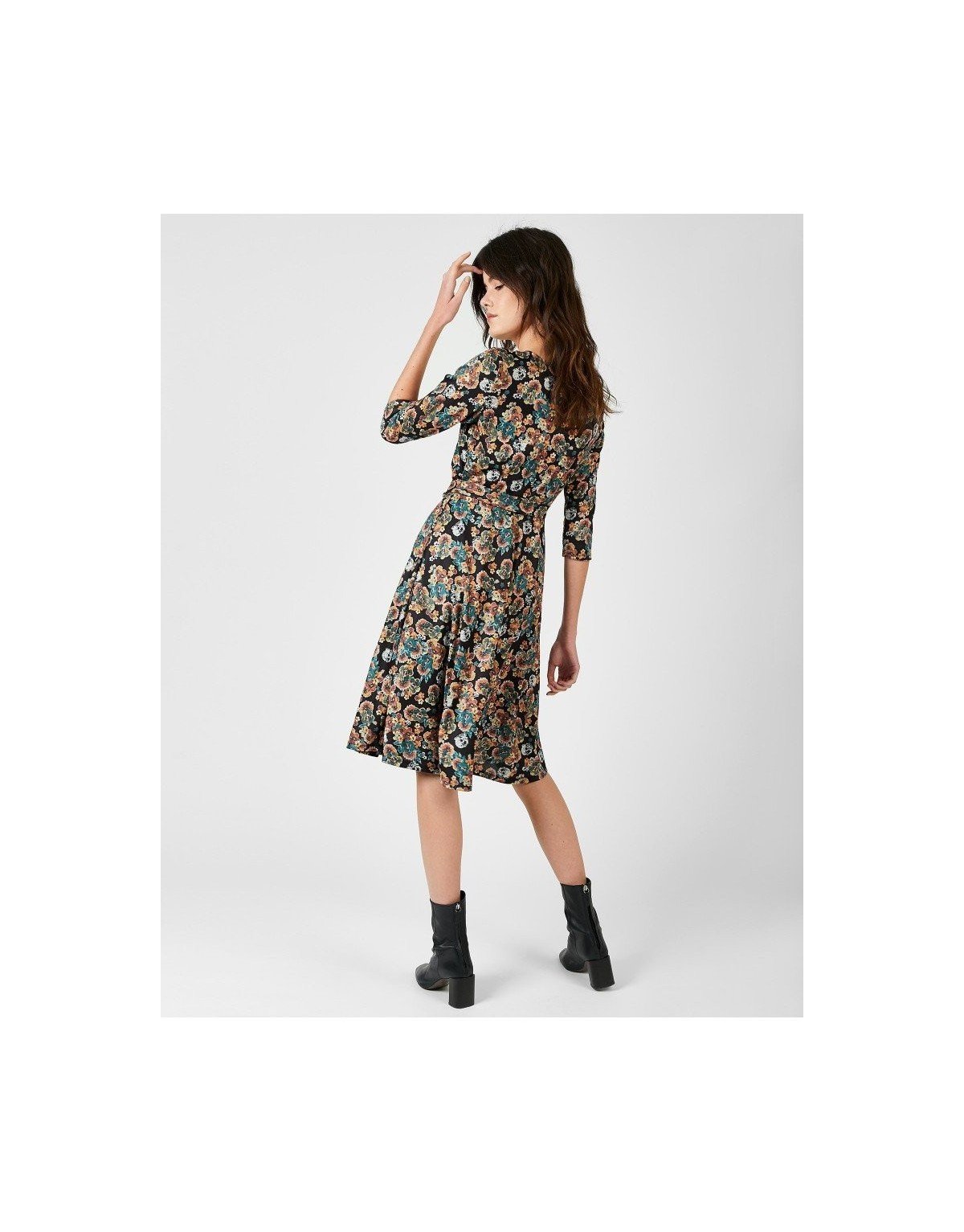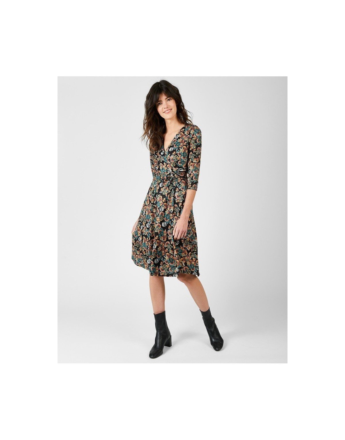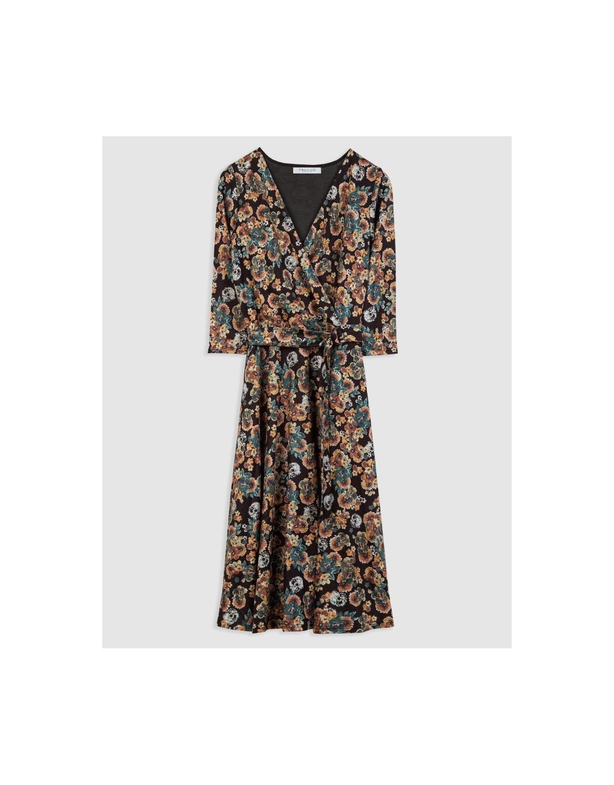 Vestido con cuello de pico con nudo en cintura y estampado floral